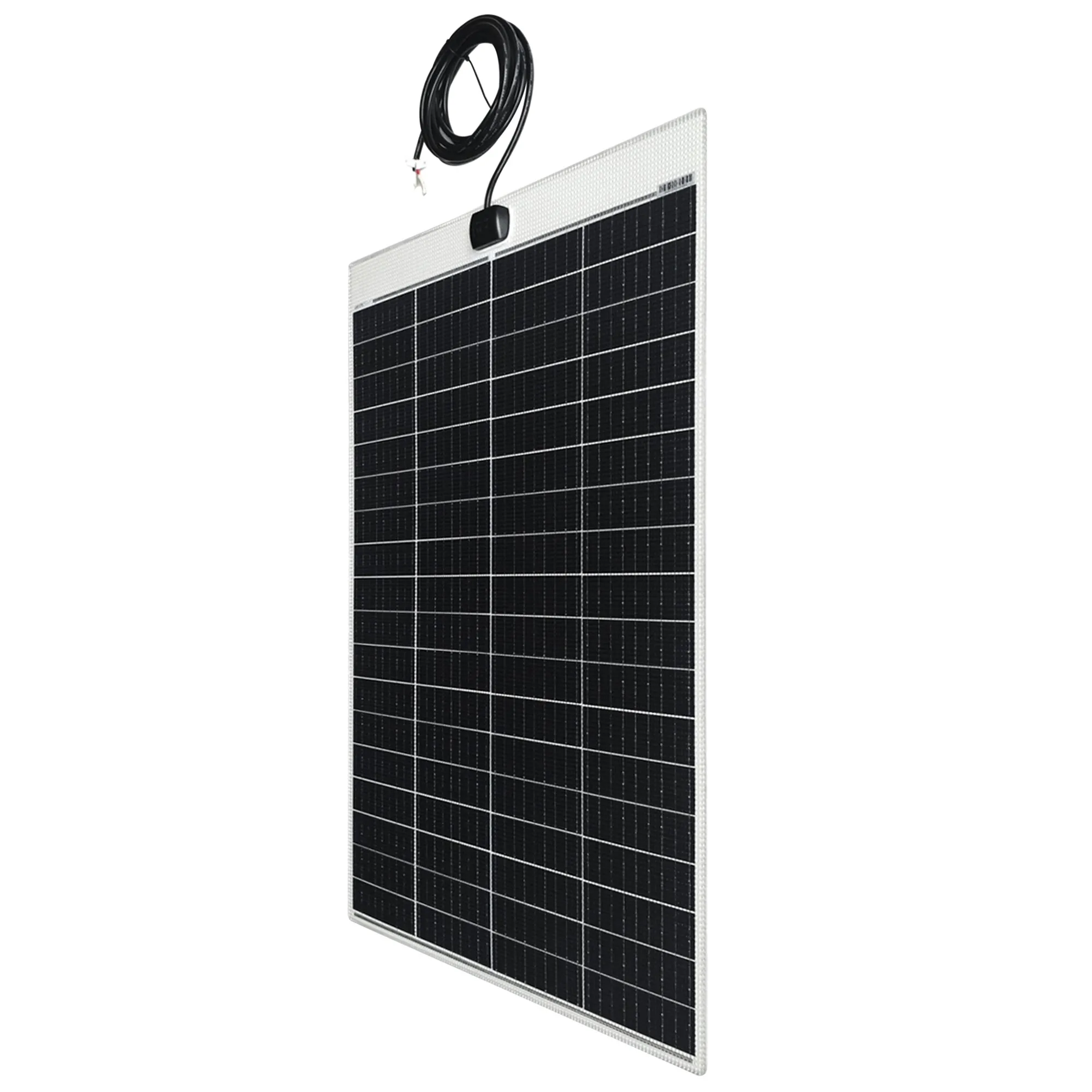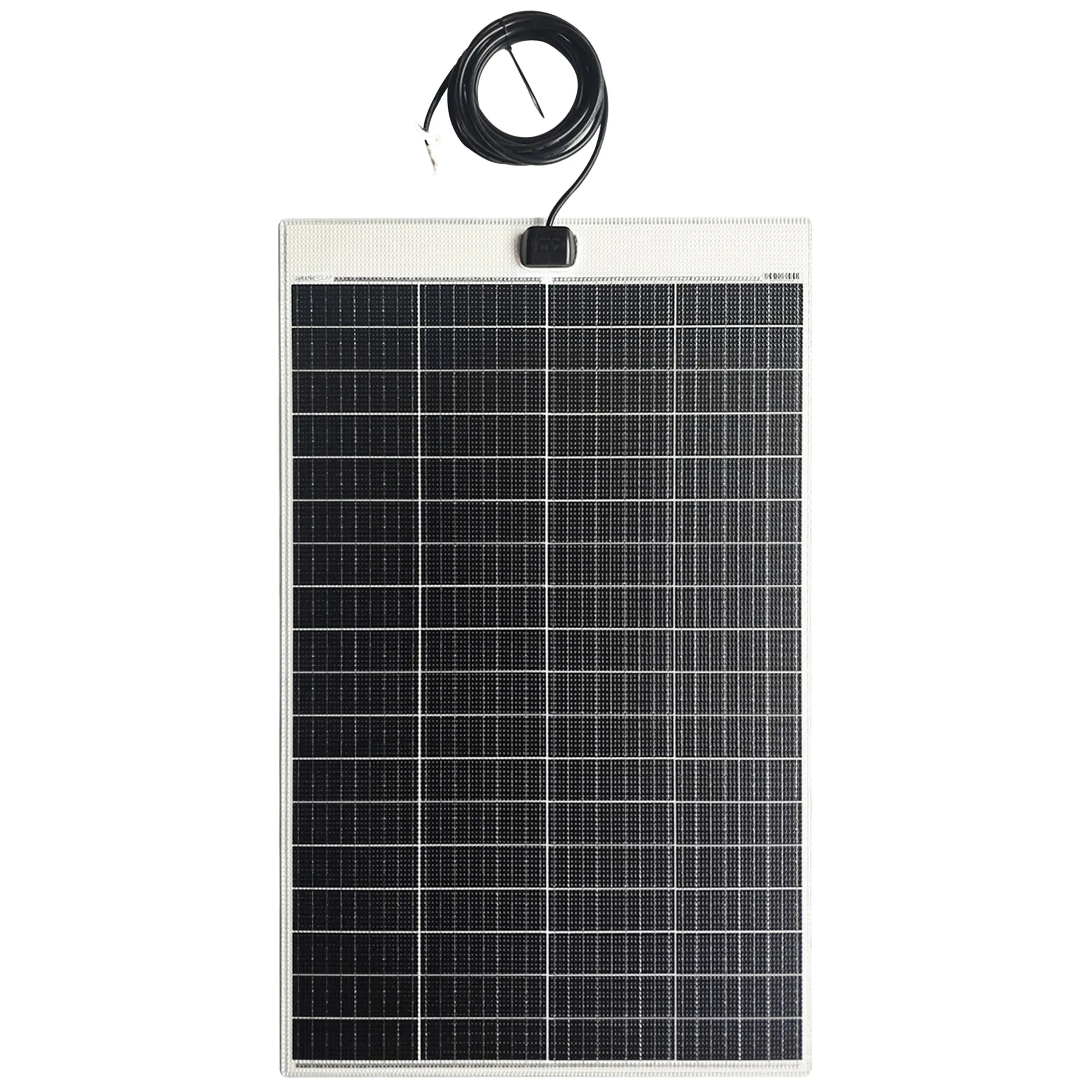 Das Modul ist extrem flach, leicht und kompakt und kann direkt auf das Fahrzeugdach aufgeklebt werden. Ideal für den Einsatz auf Kastenwagen, Microvans oder Hochdächern, bei denen die Installationshöhe so niedrig wie möglich sein muss. Geschützt sind die Hochleistungszellen durch eine witterungsbeständige Kunststofffolie. Das Anschlusskabel (4 m) ist fest am Modul vergossen, damit keine Feuchtigkeit eindringen kann.