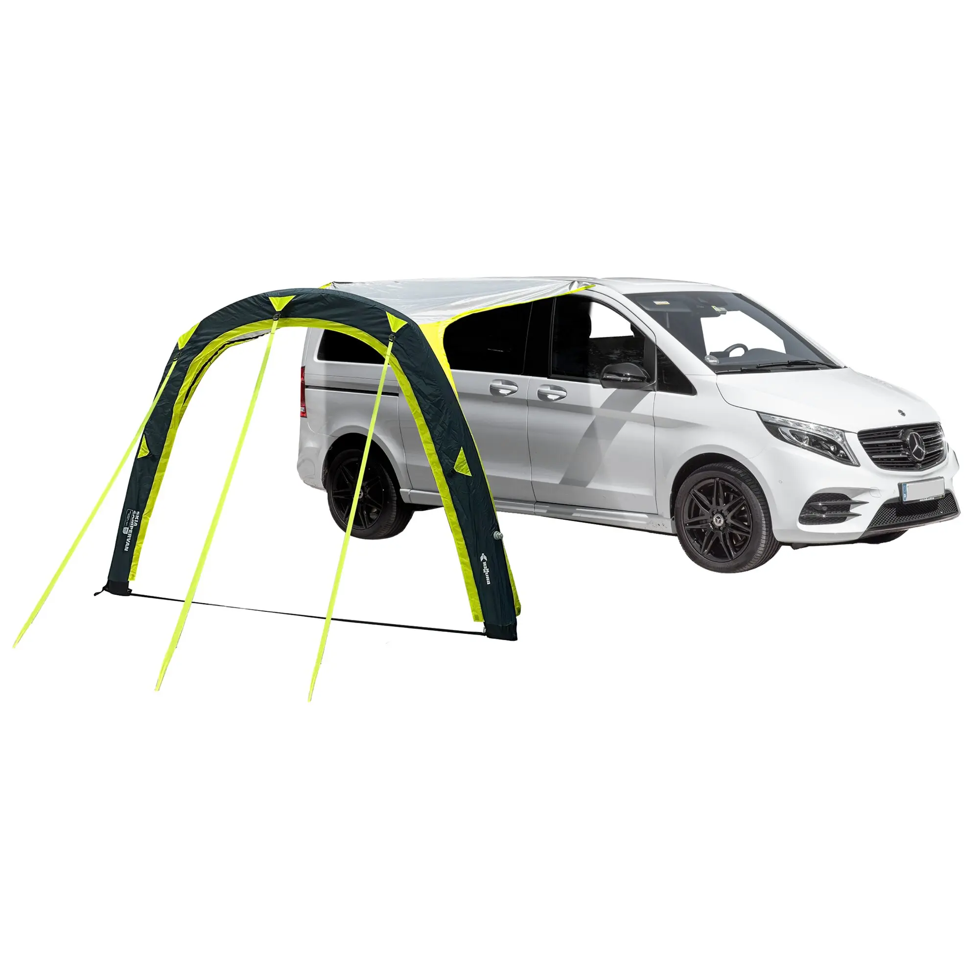 Sekundenschnell einsatzbereites Sonnendach für Caravans und Kastenwagen mit aufblasbarem Gerüst (A.I.R. Tech Technologie). Einfacher Aufbau mittels mitgelieferter Luftpumpe. Die Luftschläuche verhindern auch bei stärkerem Wind eventuelle Beschädigungen am Fahrzeug. Mit Befestigungsmöglichkeit für optionale Seitenteile. Inkl. Montagezubehör. Mit Doppelkeder 5/7 mm.