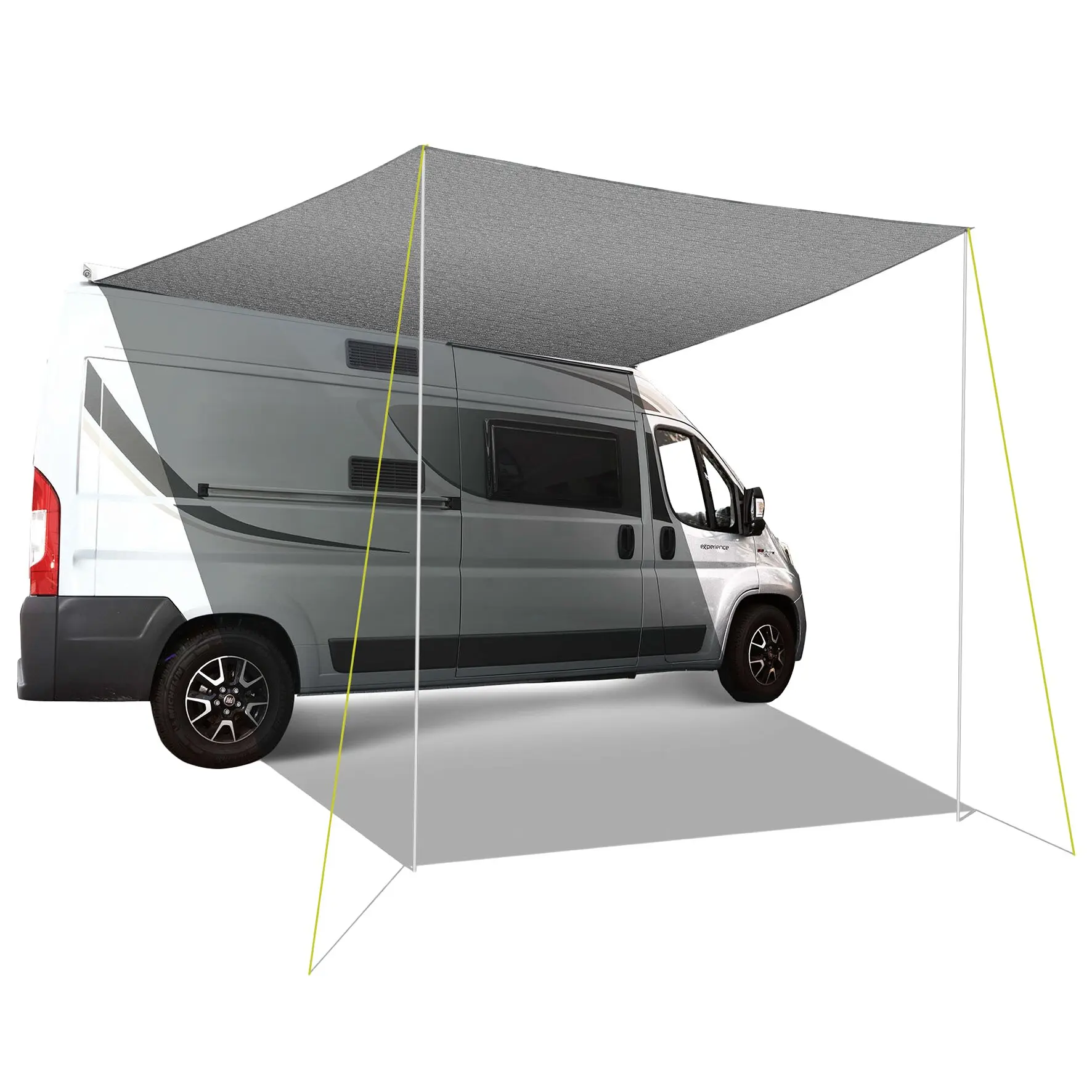 Komfortables Sonnensegel aus UV-beständigem Kunststoffgewebe. Rundum gesäumt, mit Ösen. Einfache Montage an der Kederleiste von Wohnwagen, Wohnmobilen, Kastenwagen oder Bussen. Geeignet für Fiamma und Thule Markisen. Heringe und Abspannleinen sind im Lieferumfang enthalten. Anbauhöhe: 210 cm;