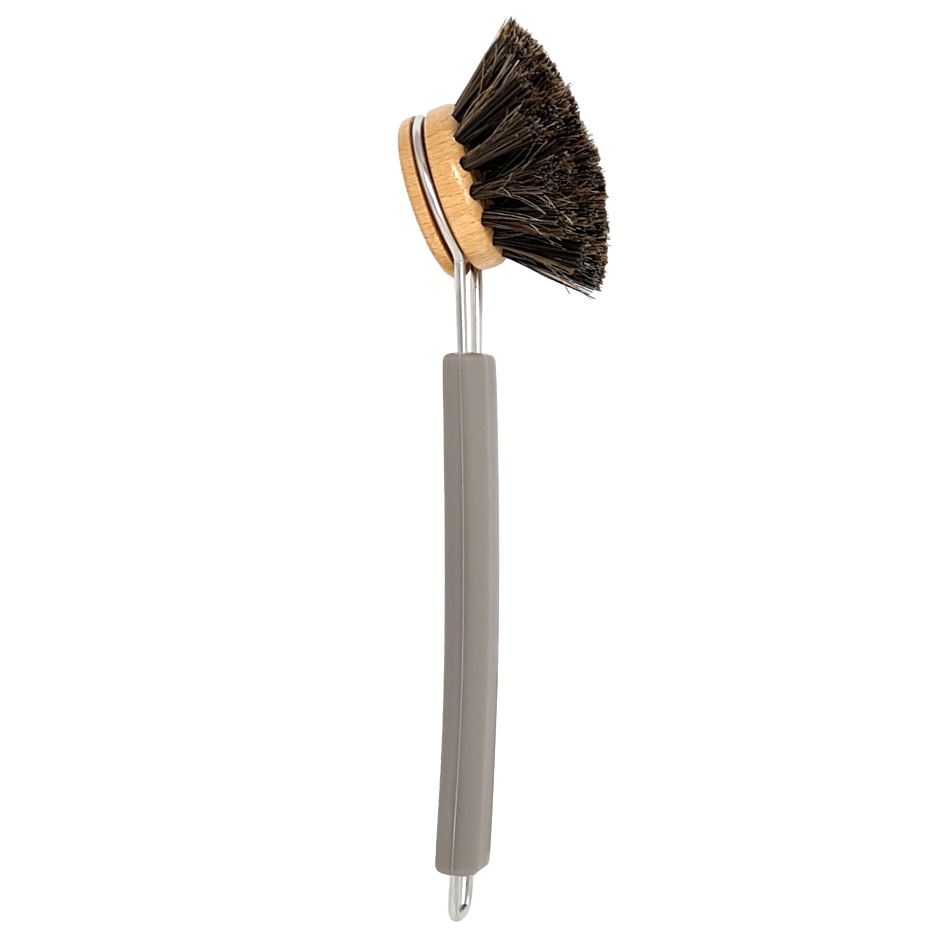 Diese nachhaltige Spülbürste überzeugt durch langlebige Materialien und eine umweltfreundliche Verarbeitung. Der Edelstahlgriff mit rutschfestem, recyclebarem Silikonzusatz liegt optimal in der Hand. Der austauschbare Bürstenkopf aus FSC®-zertifiziertem Buchenholz mit Rosshaar-Mix reinigt gründlich, ohne zu verkratzen. Einfache Pflege und Wechselköpfe machen sie besonders langlebig.