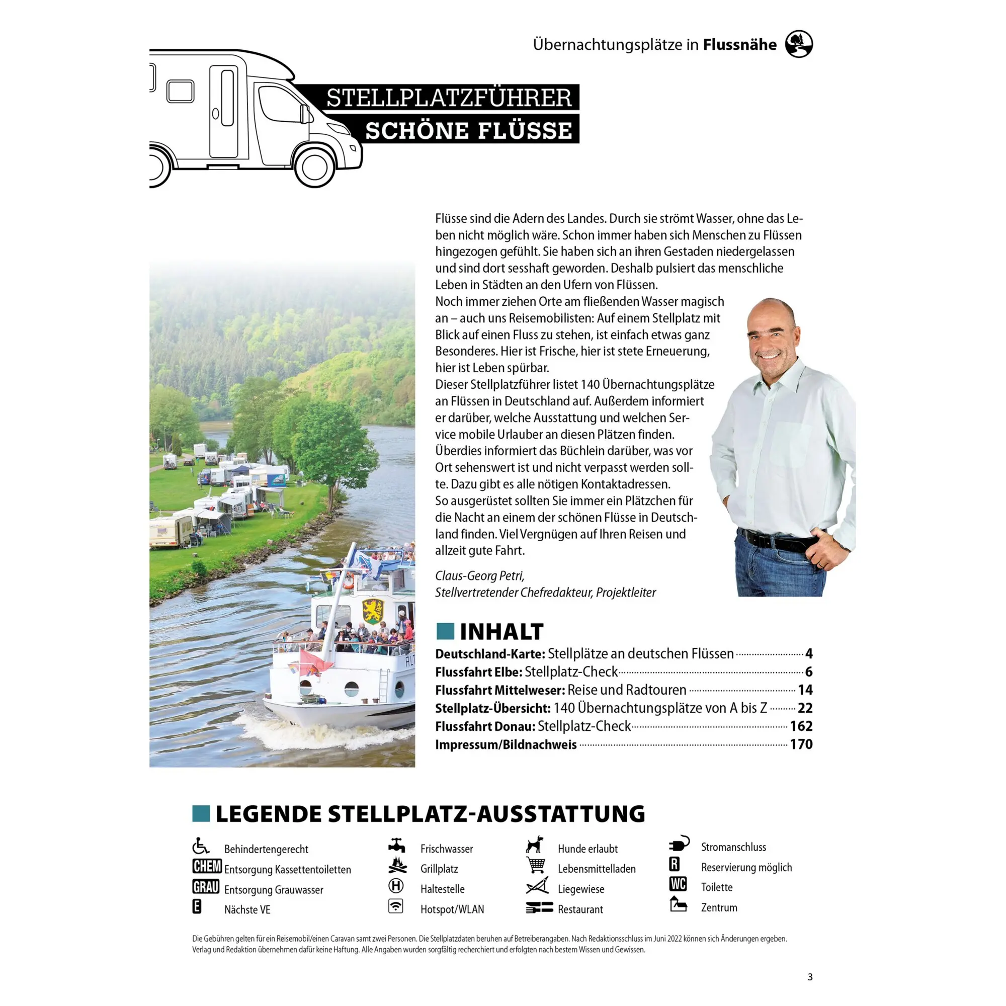 Dieser Stellplatzführer listet 140 Übernachtungsplätze an deutschen Flüssen auf, die einen besonderen Blick bieten. Er informiert über Ausstattung und Service der Stellplätze sowie lokale Sehenswürdigkeiten und Kontaktadressen. Ideal für Reisemobilisten, die die besondere Atmosphäre eines Stellplatzes am Flussufer erleben möchten.