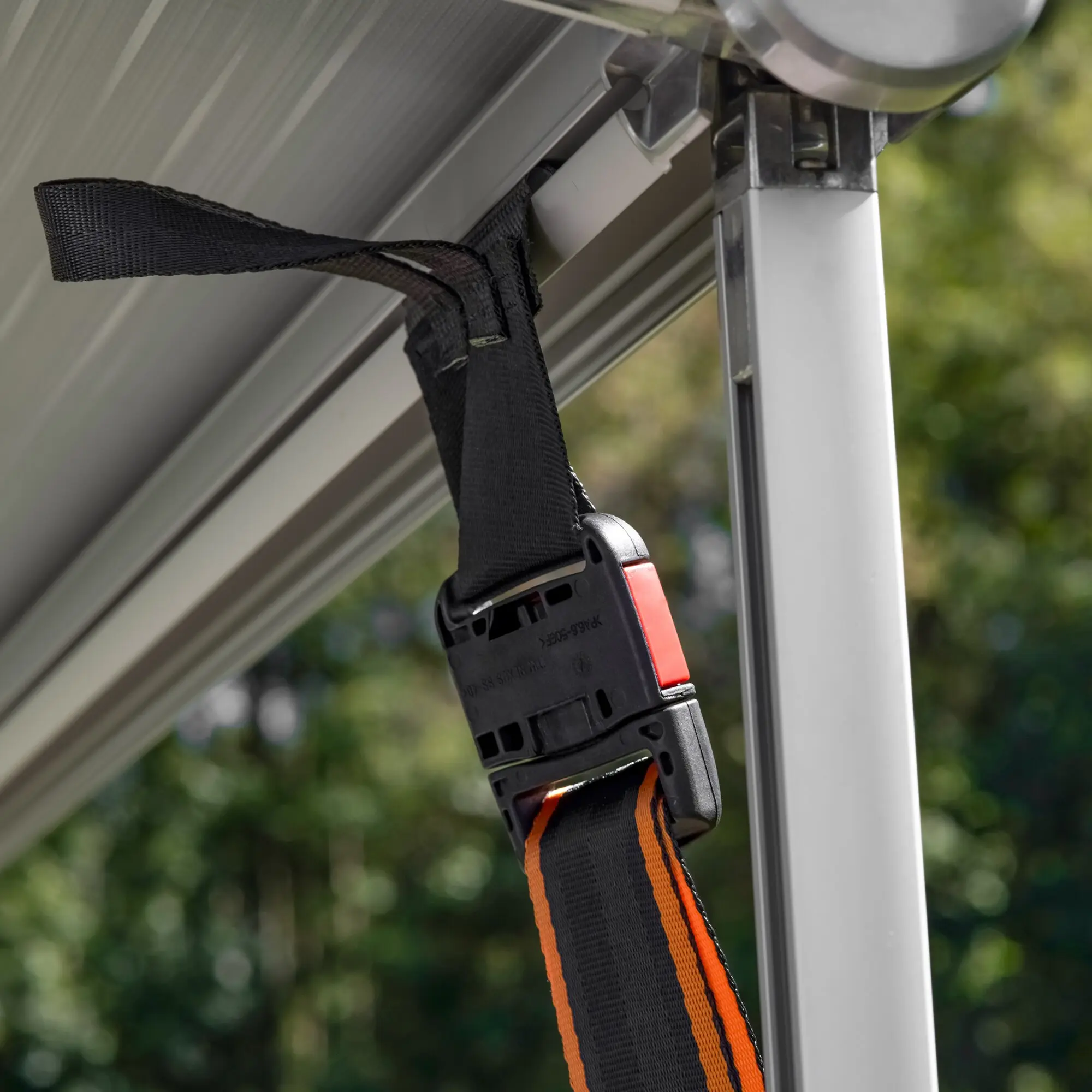 Sturmleine für 5,5 mm Kederschiene, Vorzelt & Sonnensegel inkl. elastischem Gurt als Federteil und Universal Heringsmodul (grün).