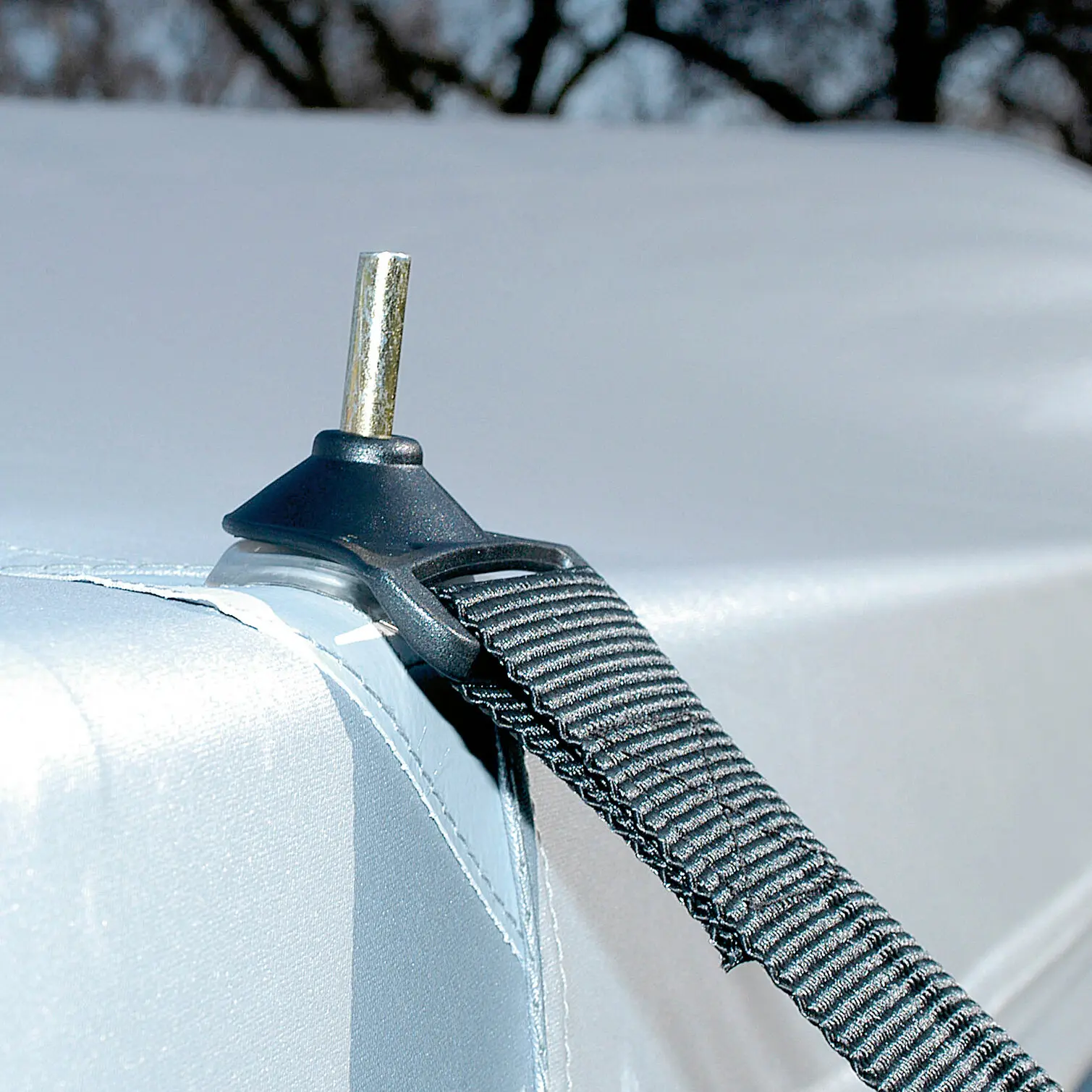 Herkömmliche, über dem Zelt liegende Sturmgurte können durch Scheuern das Dachgewebe beschädigen. Angenähte Sturmsicherungen belasten die Naht- und Gewebebereiche unnötig. Das Sturmsicherungspaket sichert dein Vorzelt am Gestängedorn der Eckwinkel, einem der stabilsten Punkte eines Vorzeltes. Die Abspannung erfolgt mit schweren Gewebegurten und robusten Ankerheringen. Die Stahl-Spiralfeder gleicht durch Windböen hervorgerufene Reiß- und Zugkräfte aus.