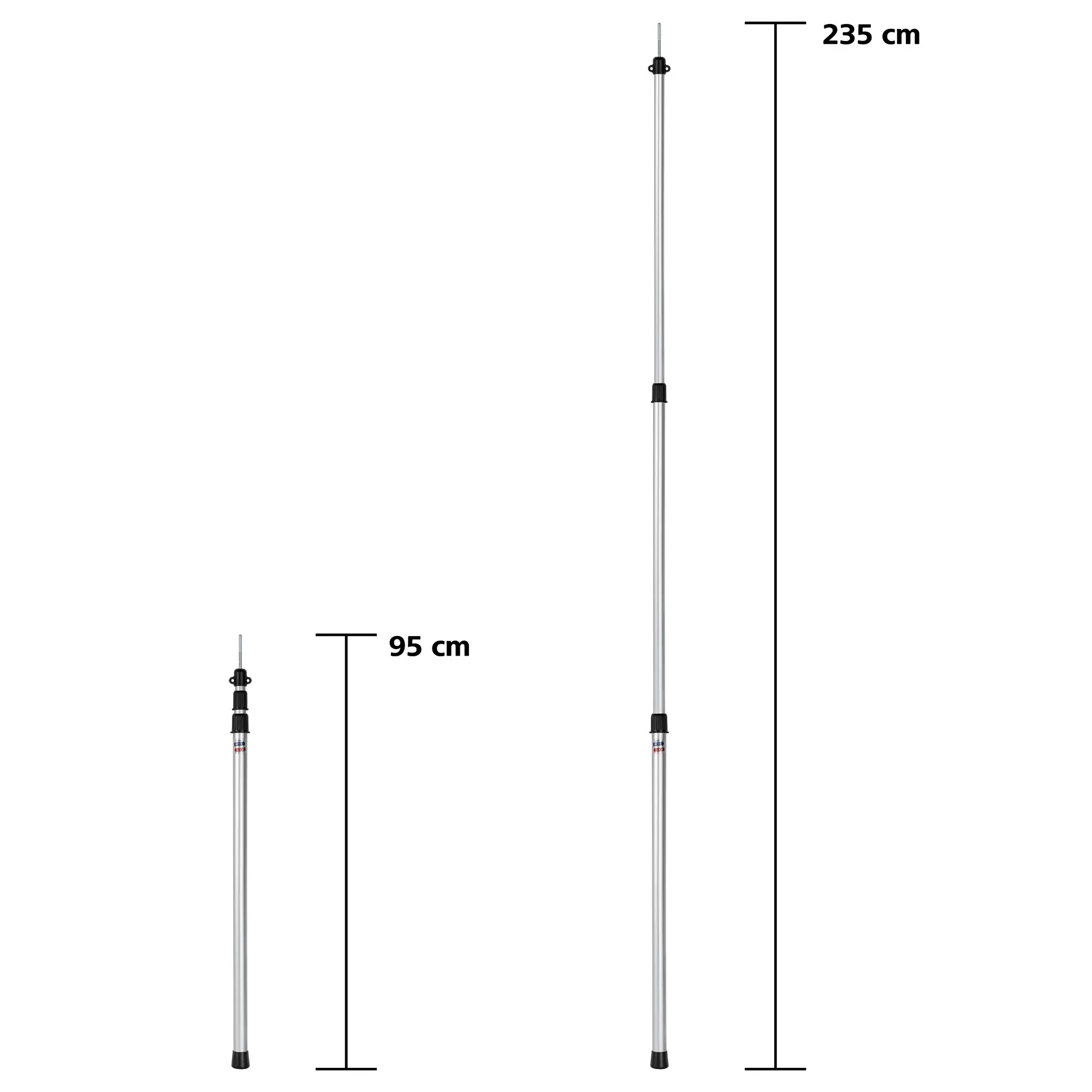 Leichte und teleskopierbare Aufstellstangen für Ihre Tarps, Planen und Vorzelte. Die 3 Segmente werden auseinandergezogen und mit einer Drehung im Uhrzeigersinn fixiert.