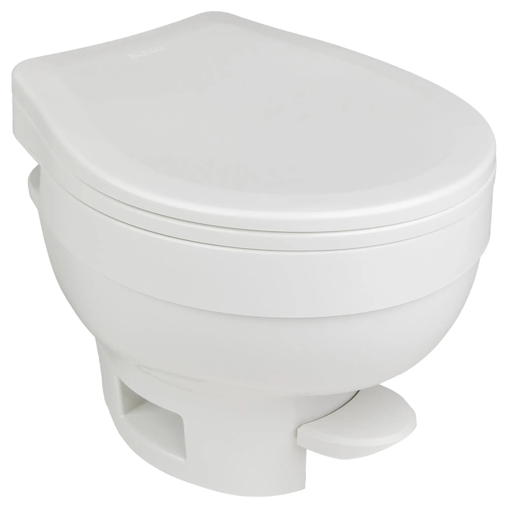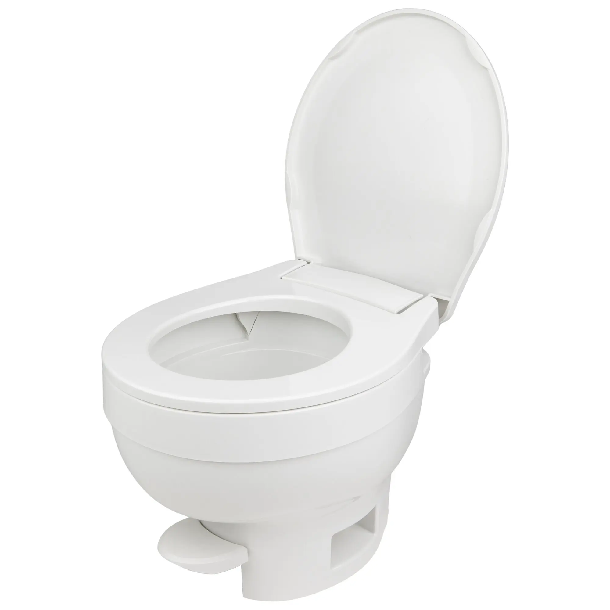 Eine Toilette im amerikanischen Stil, die in hoher und niedriger Ausführung erhältlich ist. Die Aqua Magic VI wird jeweils an den zentralen Wasser- und Fäkalientank angeschlossen.