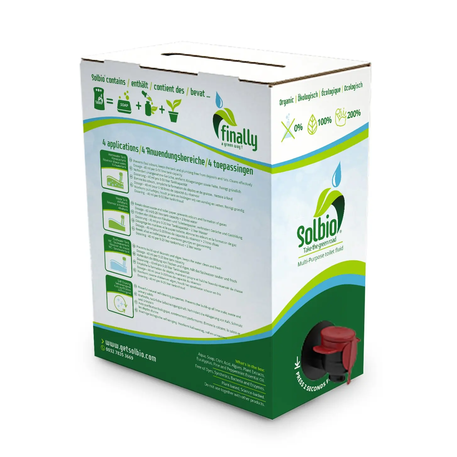 Solbio Original ist weltweit eine der besten biologischen Sanitärflüssigkeiten für mobile Toiletten. Die multifunktionale Formel ist leistungsstark, sicher und enthält reine und frische Aromen. Sie ist gleichzeitig geeignet für die Grundreinigung des Grauwassertanks und als Geruchsverhinderer für zwischendurch.