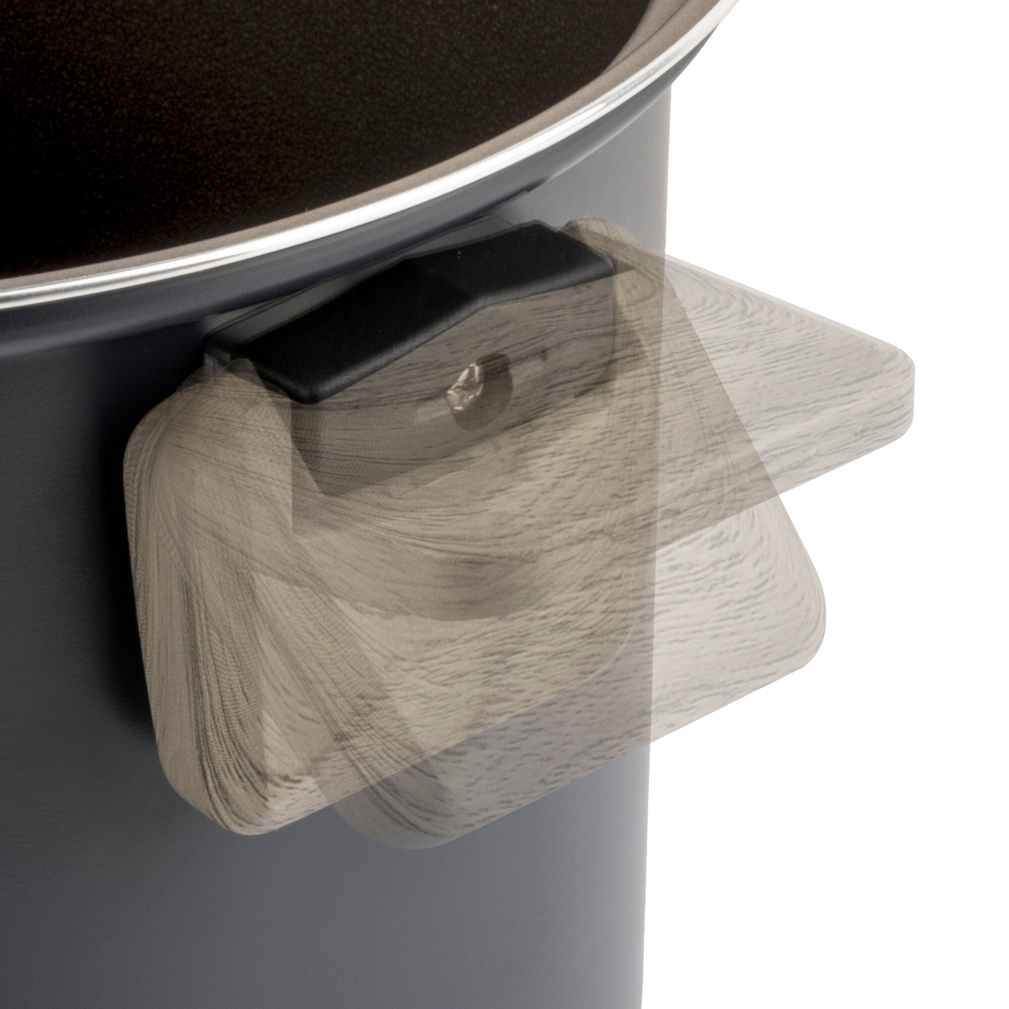 Topfset aus recyceltem Aluminium. Langlebig, leicht und stapelbar, ohne feste Griffe. Inkl. Glasdeckel. Für Induktion geeignet.