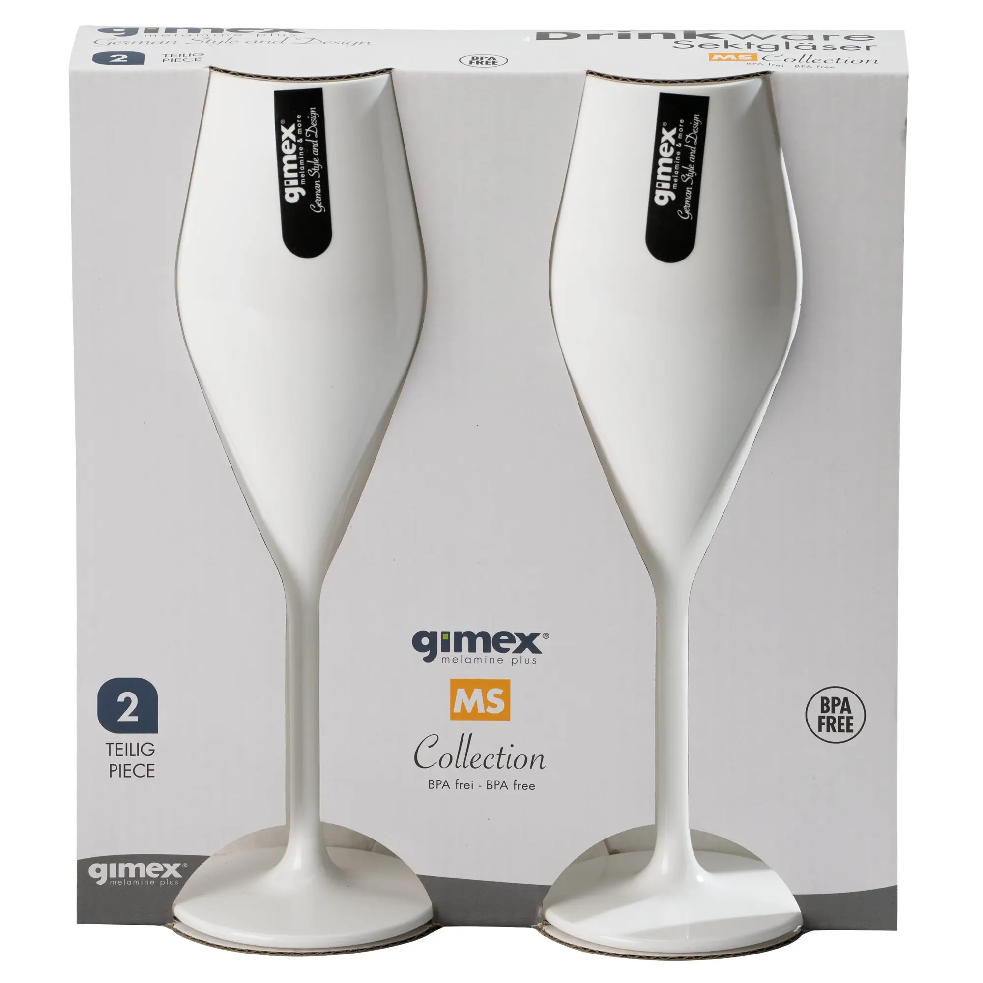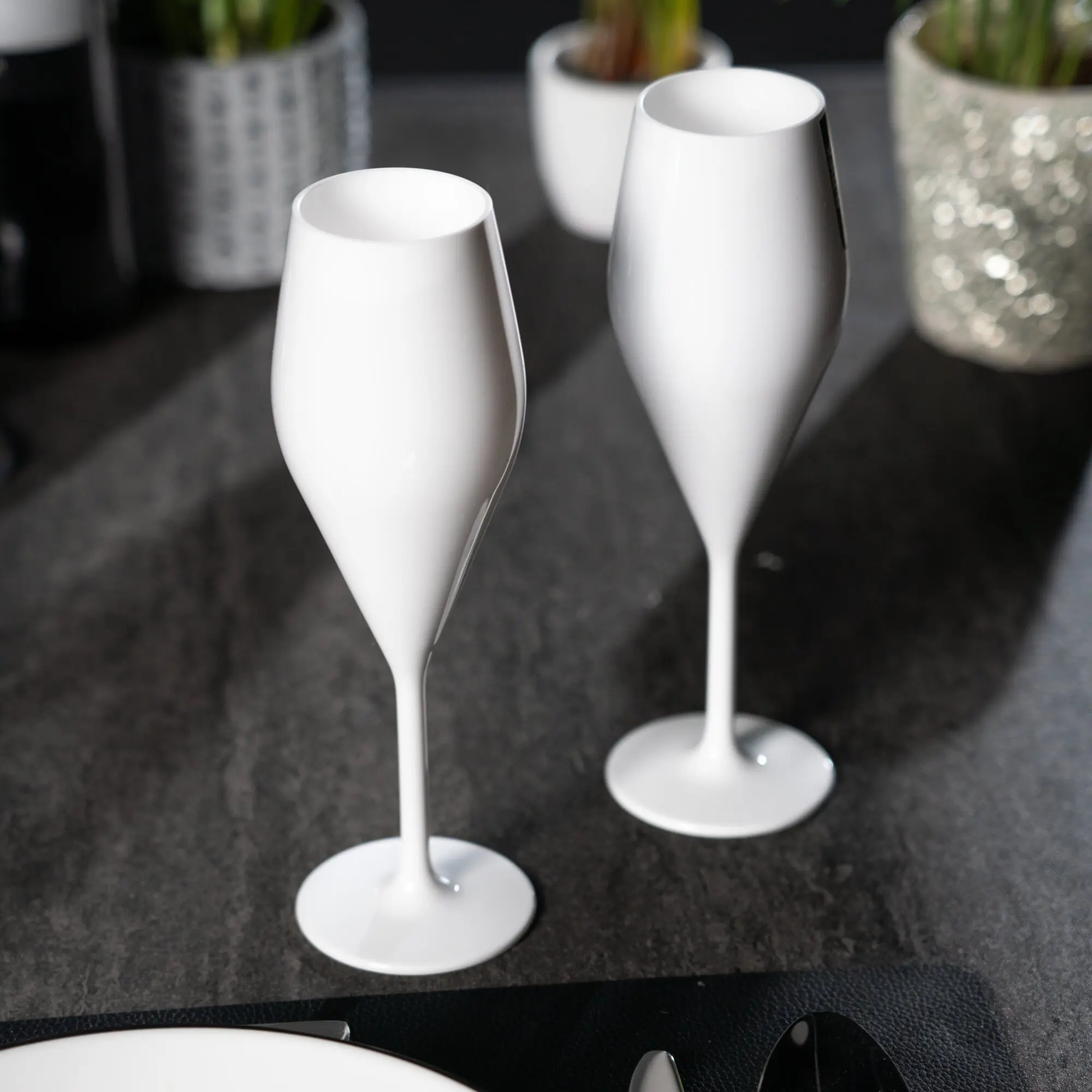 Lieferumfang: 2-er Set Eleganza Kunststoff Sektgläser Weiß