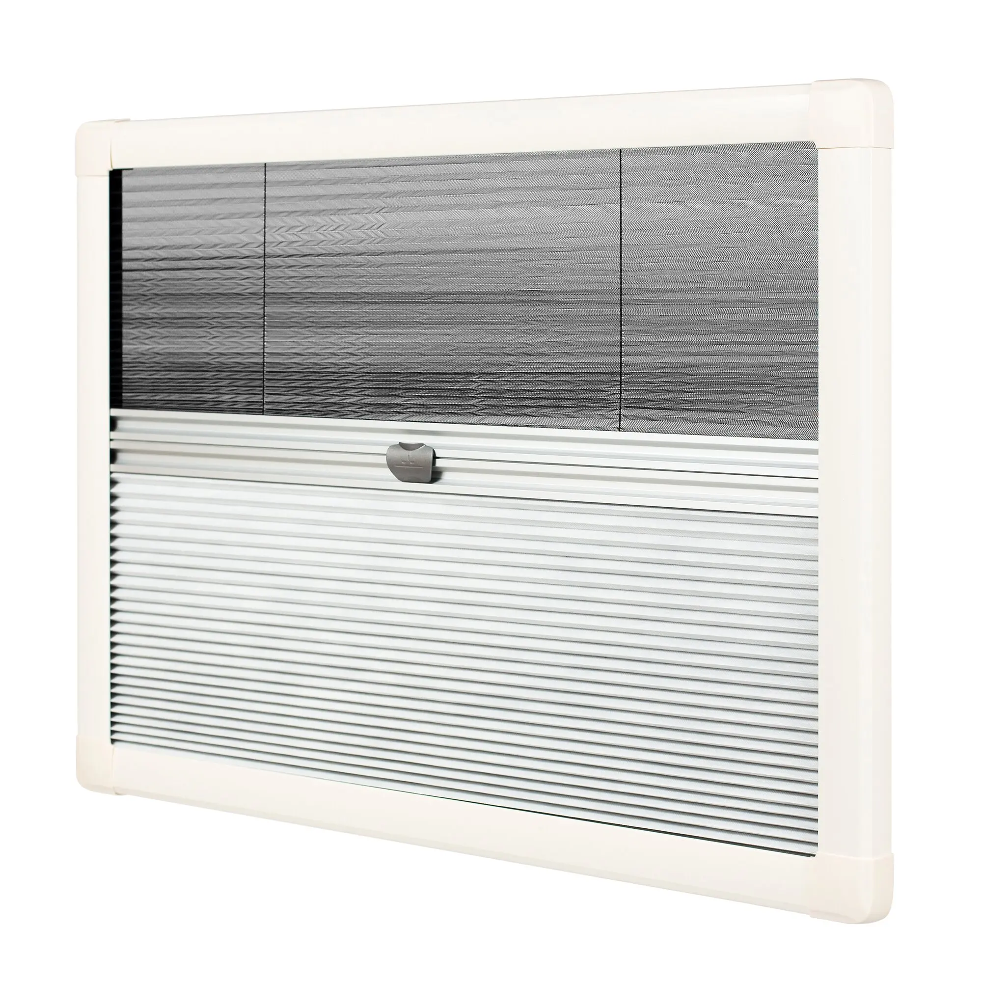 Hochwertige, vielseitige Verdunkelungs- und Fliegenschutzanlage für Fenster. Für die Nutzung im Wohnwagen und Reisemobil entwickelt. Das UCS Plissee ist im soliden, attraktiven „Softline Design" gefertigt und lässt sich geräuschlos bedienen. Die Höhe der Gaze und der Verdunkelung ist stufenlos einstellbar. Maße über alles, abzüglich 78 mm = Ausschnittmaß.