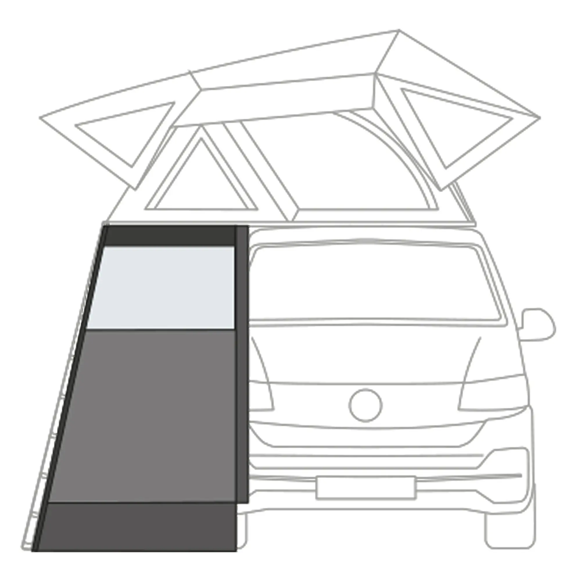 Das Vorzelt dient z. B. als Mehrzweck-Umkleideraum und sorgt als Ergänzung zum Dachzelt Moonlight Tent für noch mehr Privatsphäre. Geeignet für Campingbusse und Geländewagen.