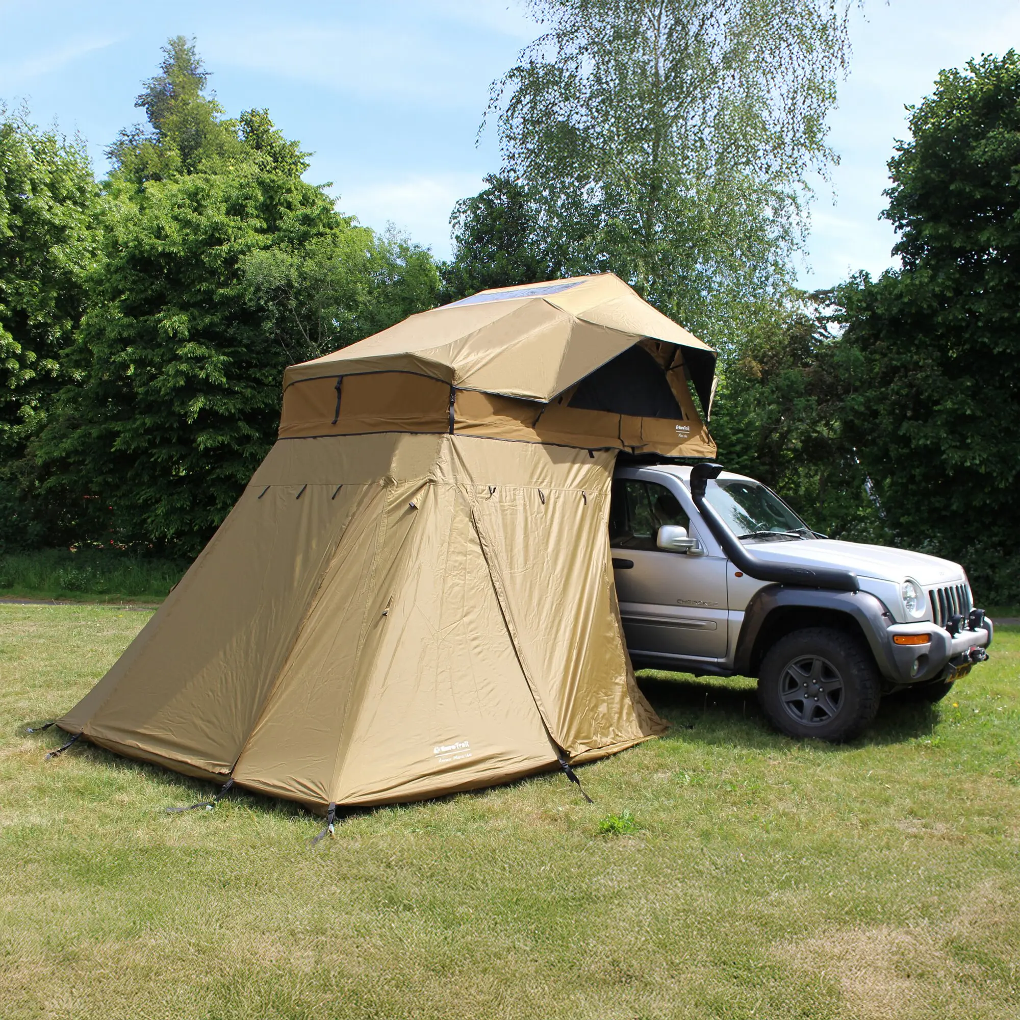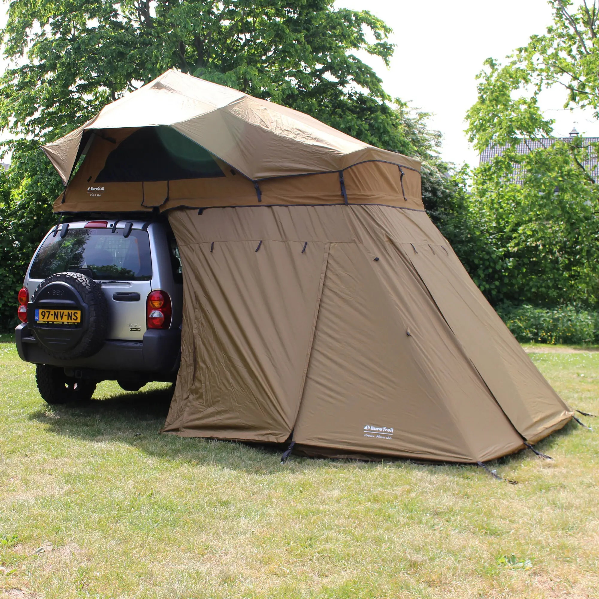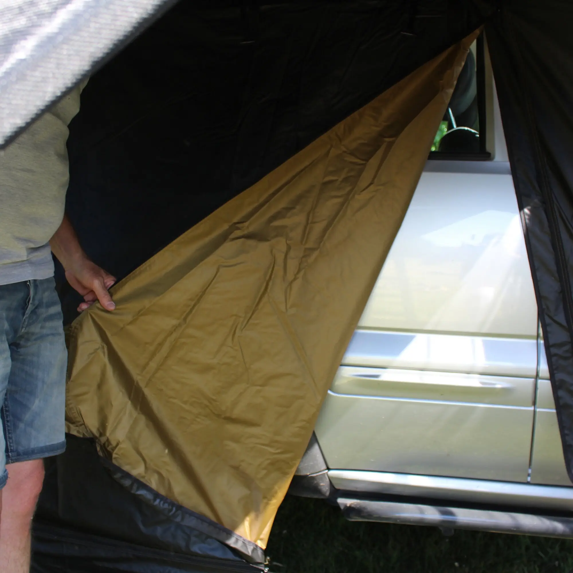 Das passende Unterzelt zum Softtop-Dachzelt Mara schafft zusätzlichen Stauraum und sorgt für mehr Privatsphäre. Integrierte Moskitogaze schützt vor Insekten und unterstützt die Belüftung. Die Montage erfolgt einfach, indem das Unterzelt am untenliegenden Keder des Dachzelts eingezogen wird.