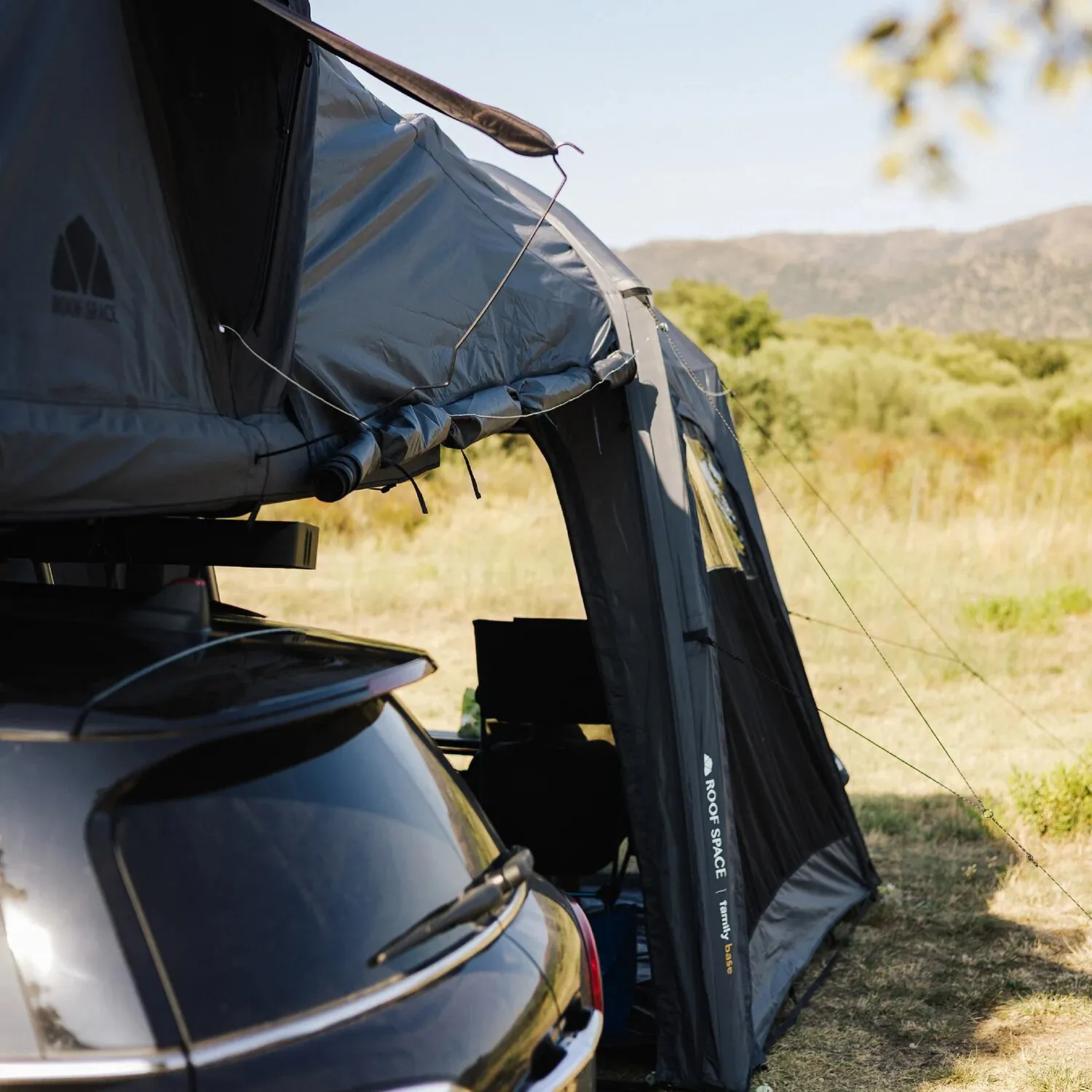 Der Connector M für das Family Base 2 Vorzelt ist das Verbindungsstück zwischen Dachzelt und freistehendem Vorzelt. Er schafft zusätzlichen Raum und passt sich dabei unterschiedlichen Fahrzeughöhen an. Die Größe M ist für Fahrzeuge mit einer Höhe von 1,65 m bis 1,90 m geeignet. Für höhere Fahrzeuge wird der Connector L (siehe Zubehör) empfohlen.