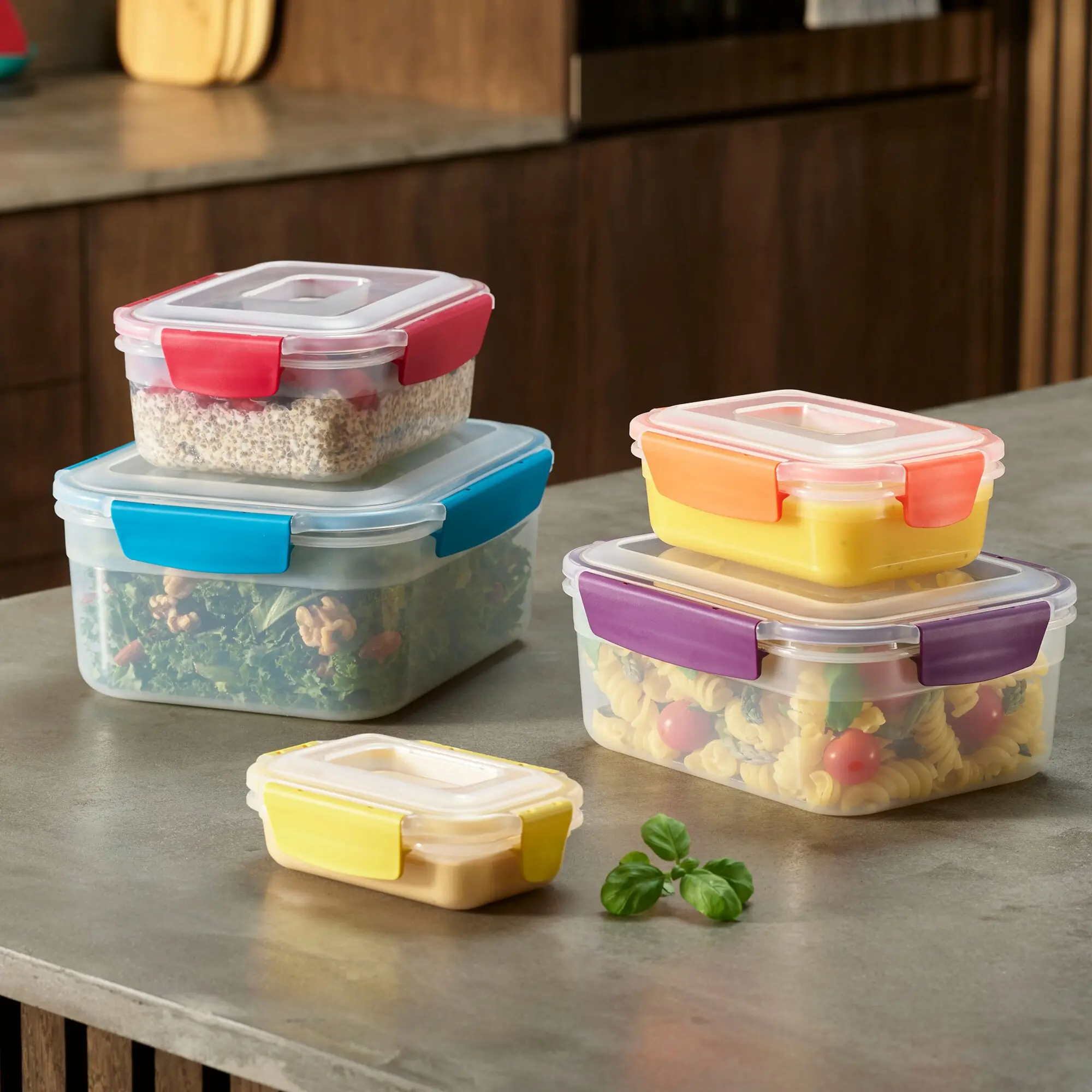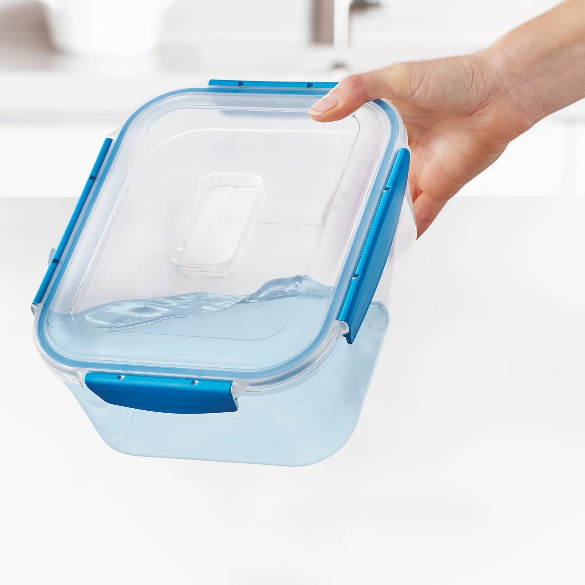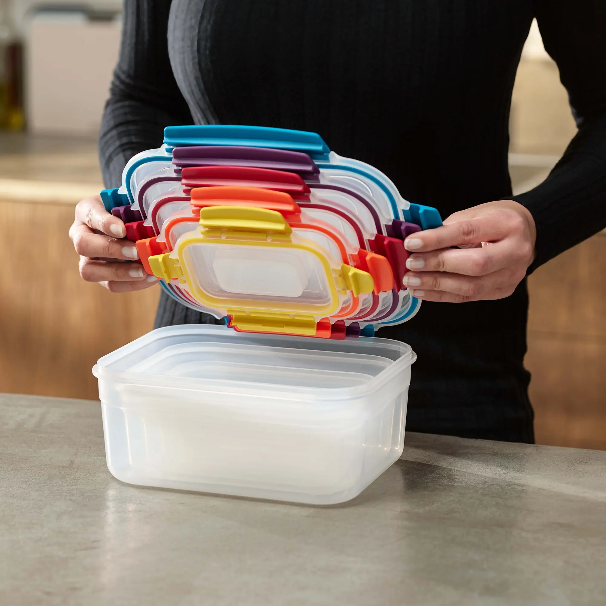 Dosen für die Essensaufbewahrung nehmen häufig viel Platz in den Küchenschränken ein und die Suche nach dem passenden Deckel für die Dose kann schnell zeit- und nervenaufreibend werden. Die Nest Lock Produktlinie von Joseph Joseph hat für dieses Problem die ultimative Lösung gefunden. Aufgrund ihres einzigartigen Designs lassen sich die Dosen mitsamt passenden Deckeln ineinander stapeln, wodurch sie kaum Platz einnehmen. Weiterhin wird durch die Farbcodierungen an Dose und Deckel die Zuordnung zueinander ein Kinderspiel. Alle Produkte der Nest Lock Linie sind fest verschließbar, luftdicht und auslaufsicher. Spülmaschinen- und mikrowellengeeignet.