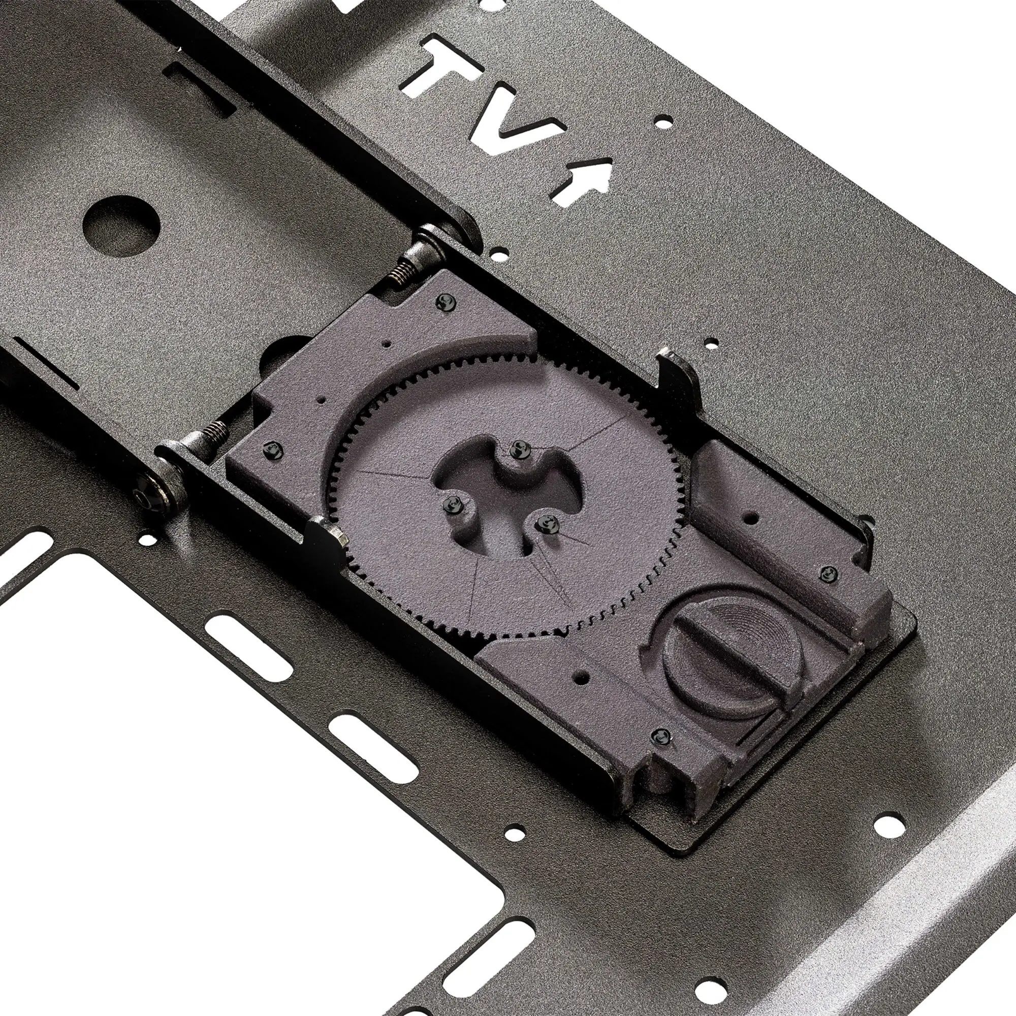 Der Drehmechanismus (Slim Mount 160 Rotation, Slim Mount 290 Rotation) ermöglicht es, das TV-Gerät mühelos von der vertikalen Position für die Fahrt in die optimale Ausrichtung für den Betrieb zu drehen – gradgenau, dank des von alphatronics entwickelten Zahnkranzdesigns.
