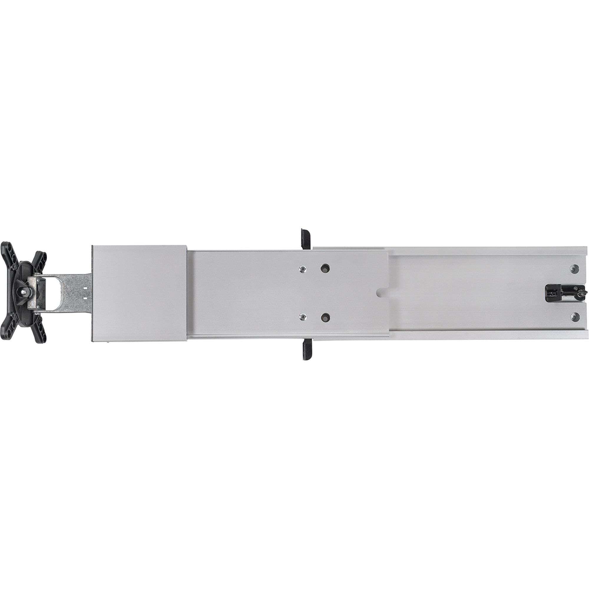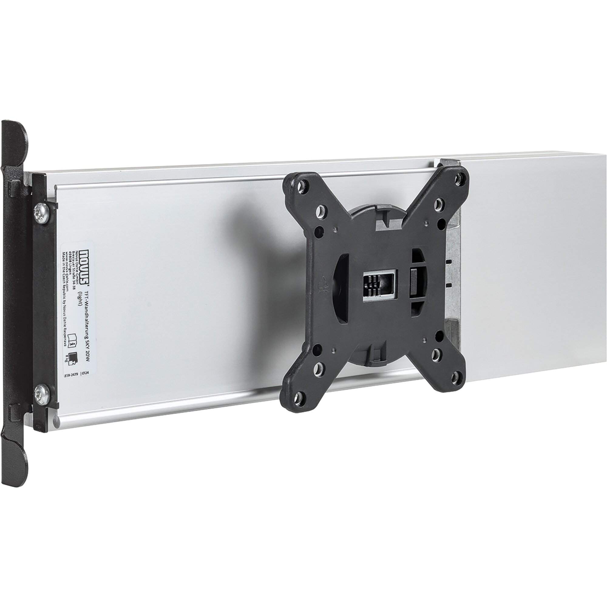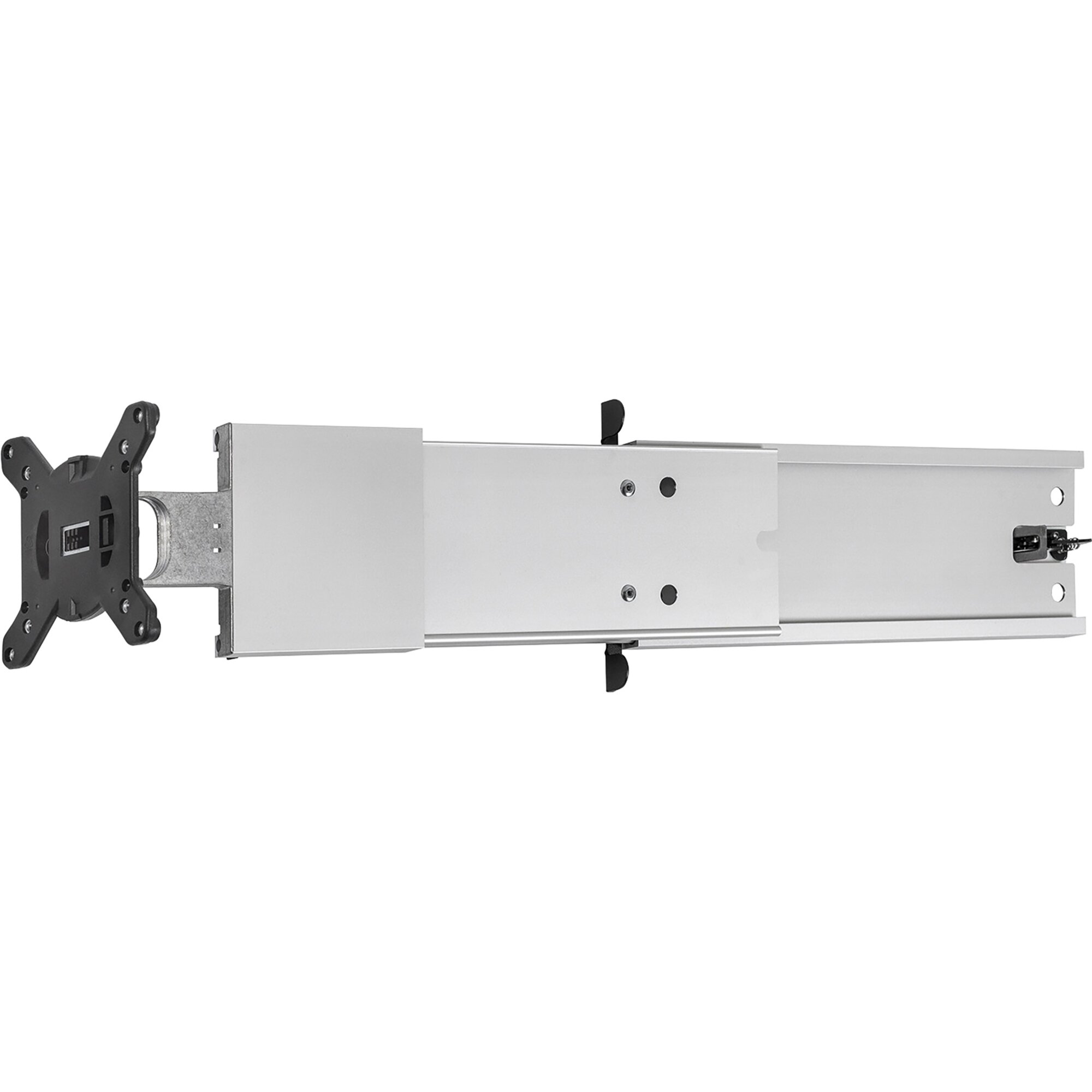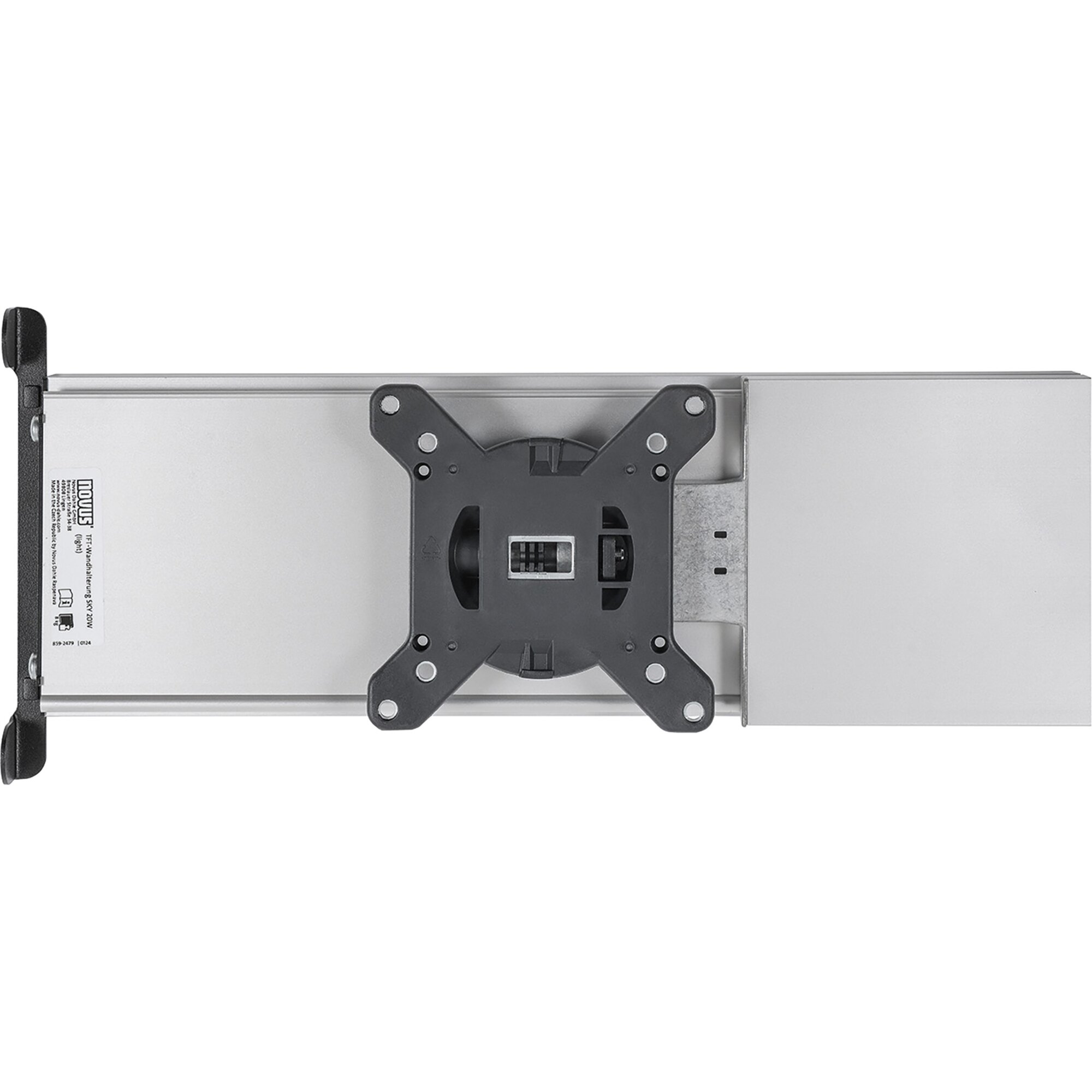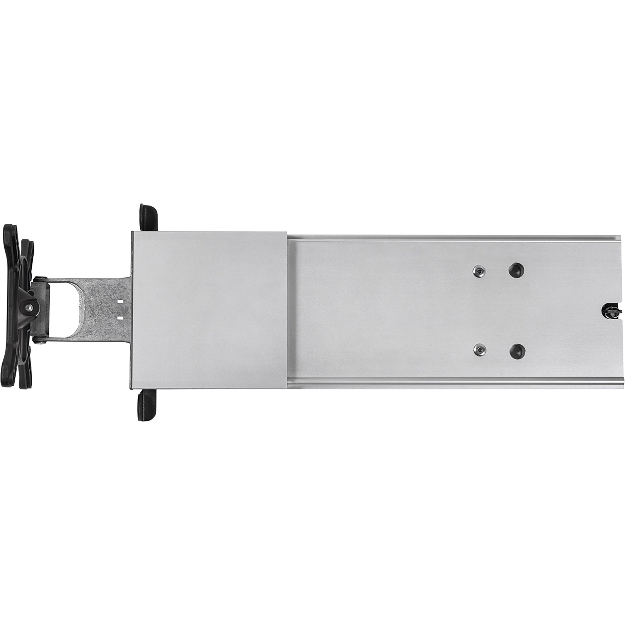 Konsolenauszug mit stufenlos verstellbarer Schwenkmechanik (bis 180°) und um ±14,5° einstellbarem Neigungswinkel. Die Halterung kann sowohl links als auch rechts angeschlagen eingebaut werden. Geeignet für alle TV-Geräte mit VESA-Norm 75 & 100. Maximaler Auszug 68,4 cm, Tragkraft max. 8 kg, Maße L 36,4/68,4 x H 16,1 x T 5,5 cm, Gewicht 1,86 kg.