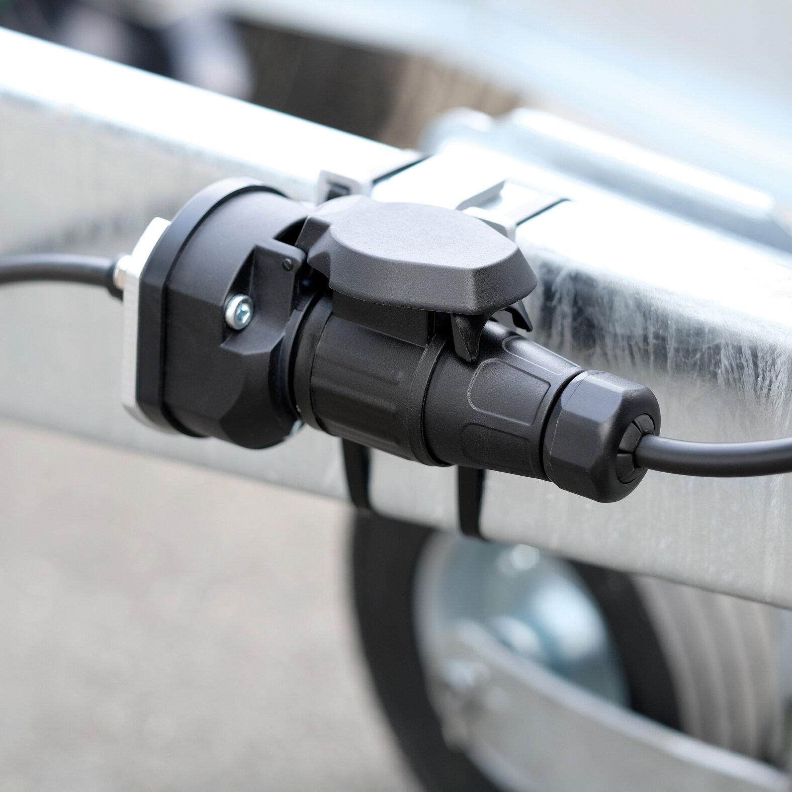 Lieferumfang: easydriver flashlight Elektronikbox mit 2 Schaltern, Kabelbaum, 13-polige Steckdose, Befestigungsmaterial, Bedienungsanleitung