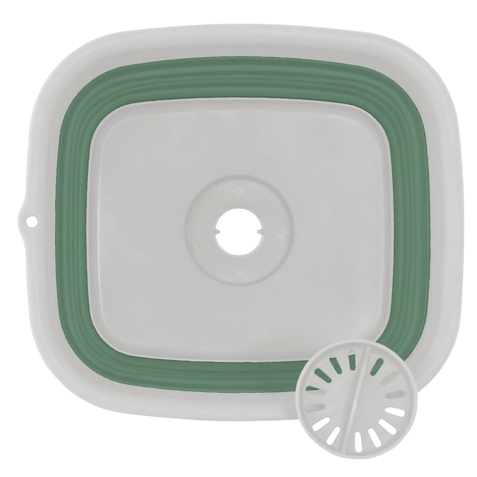 Ablauf mit abnehmbarem Stopfen. Zusammenklappbar. Leicht zu öffnen und zu falten. Bruchfest. BPA-frei.