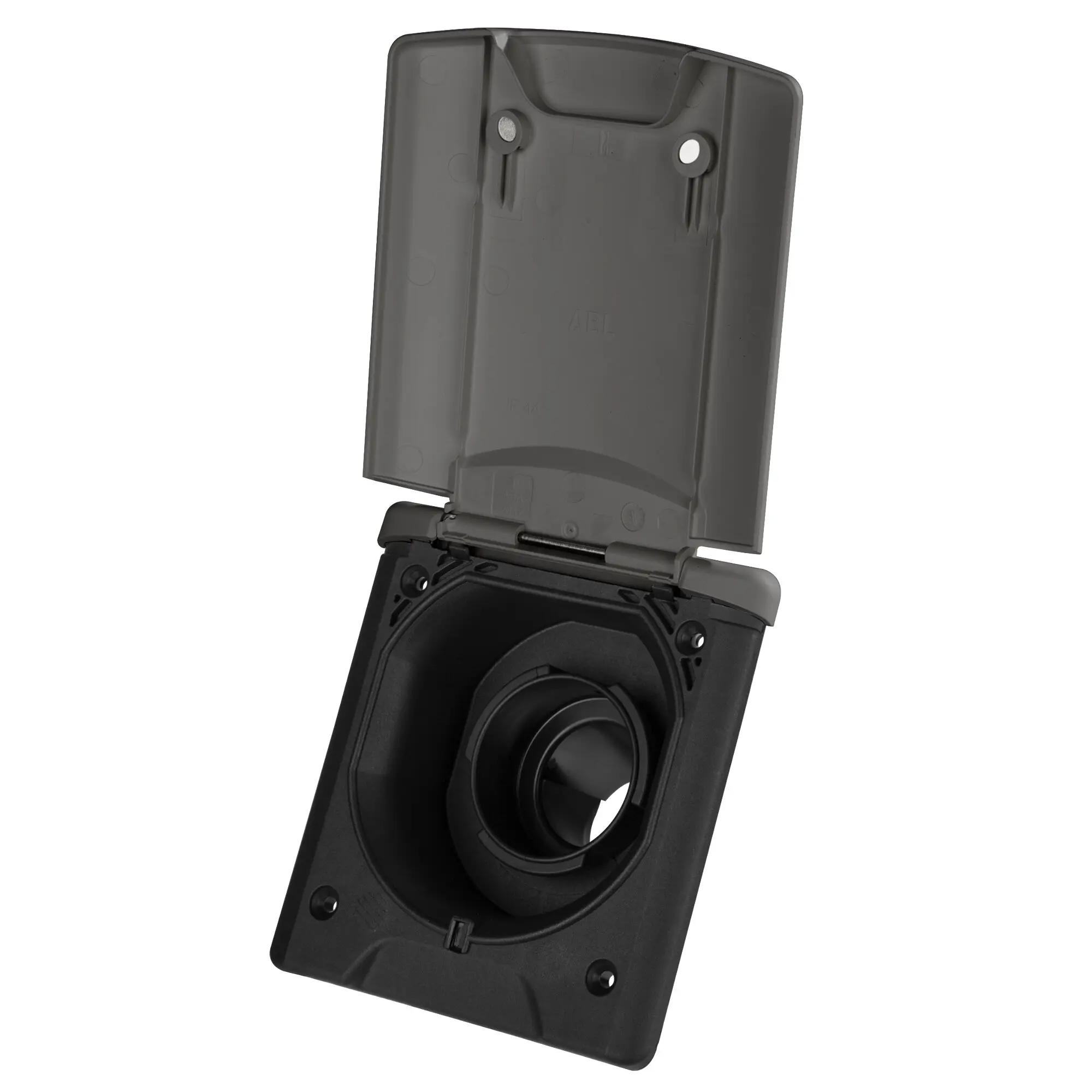 Mit Klappdeckel und Magnetverschluss, ohne Tankdeckelverschluss. Schlauchanschluss ø 40 mm.