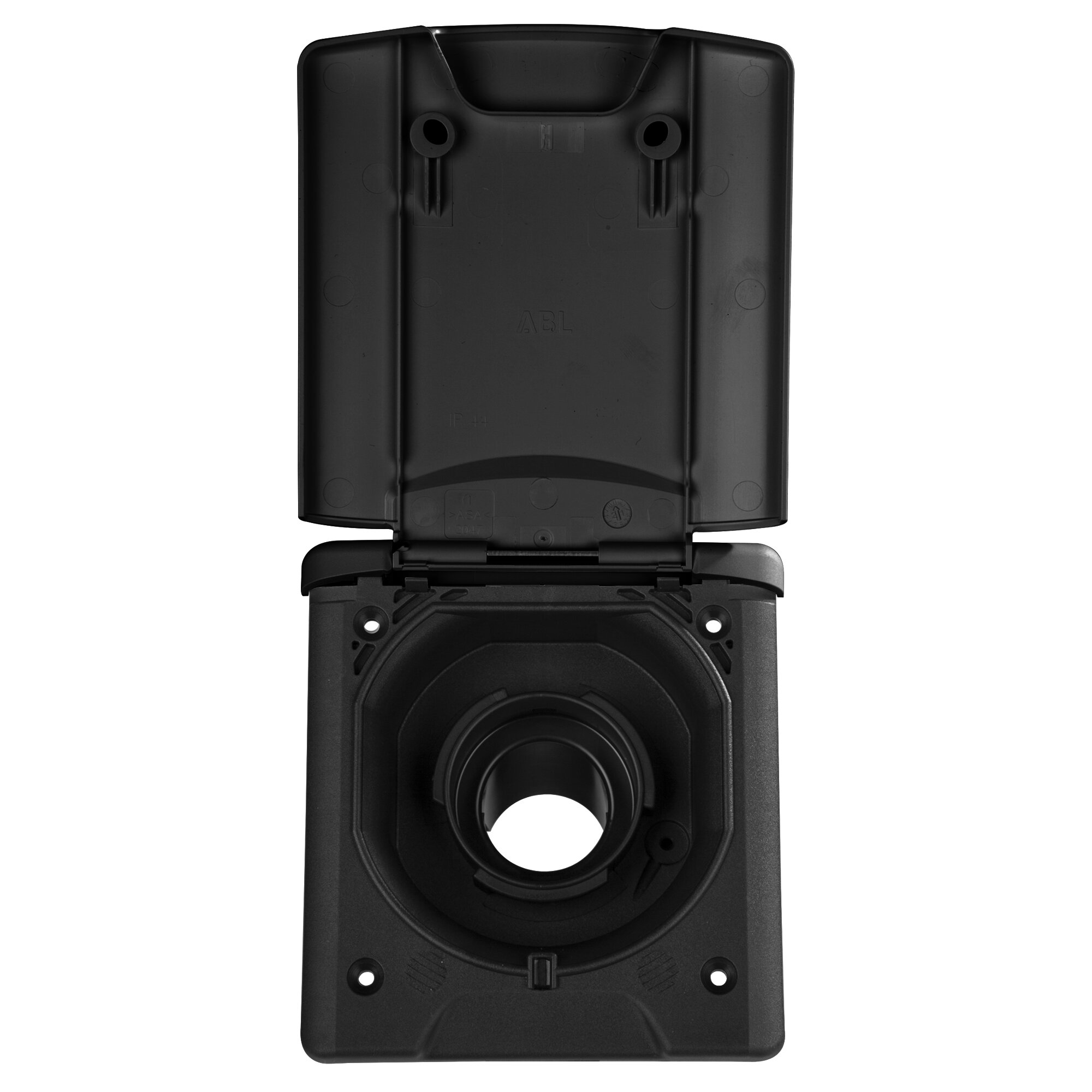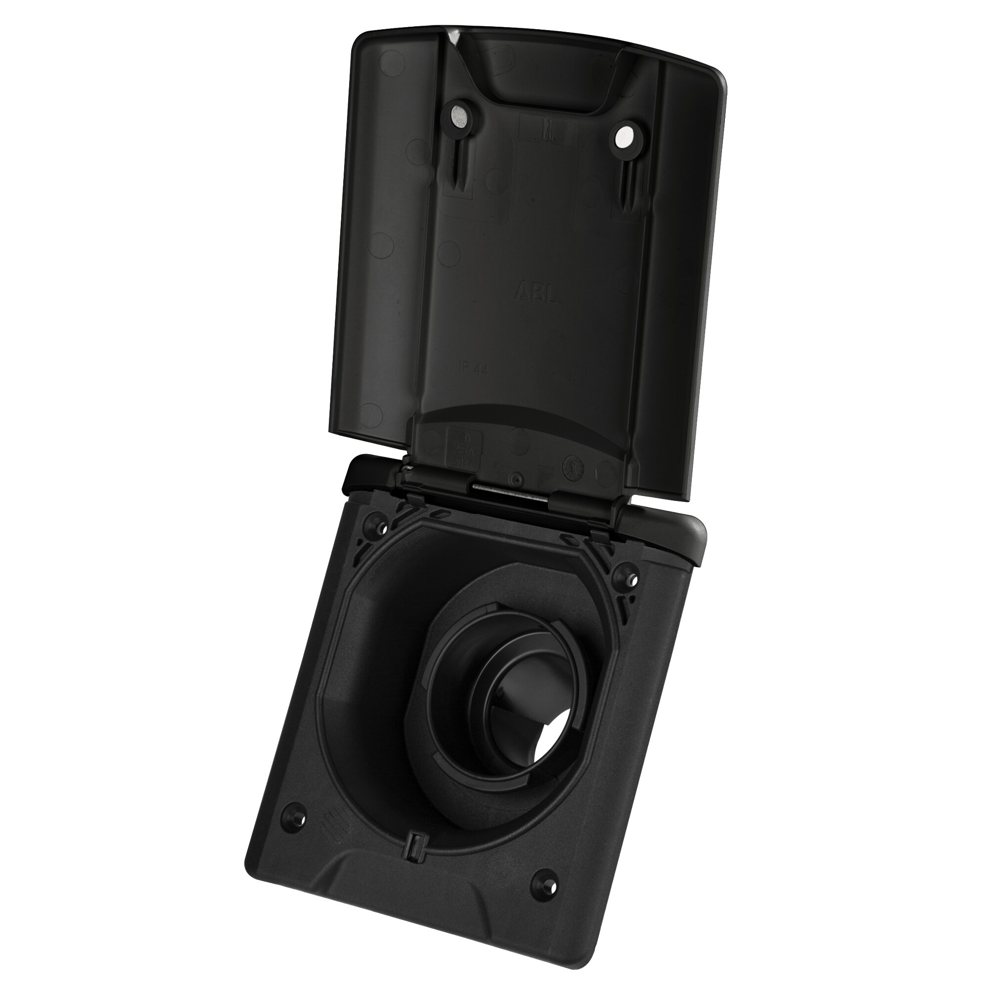 Mit Klappdeckel und Magnetverschluss, ohne Tankdeckelverschluss. Schlauchanschluss ø 40 mm.