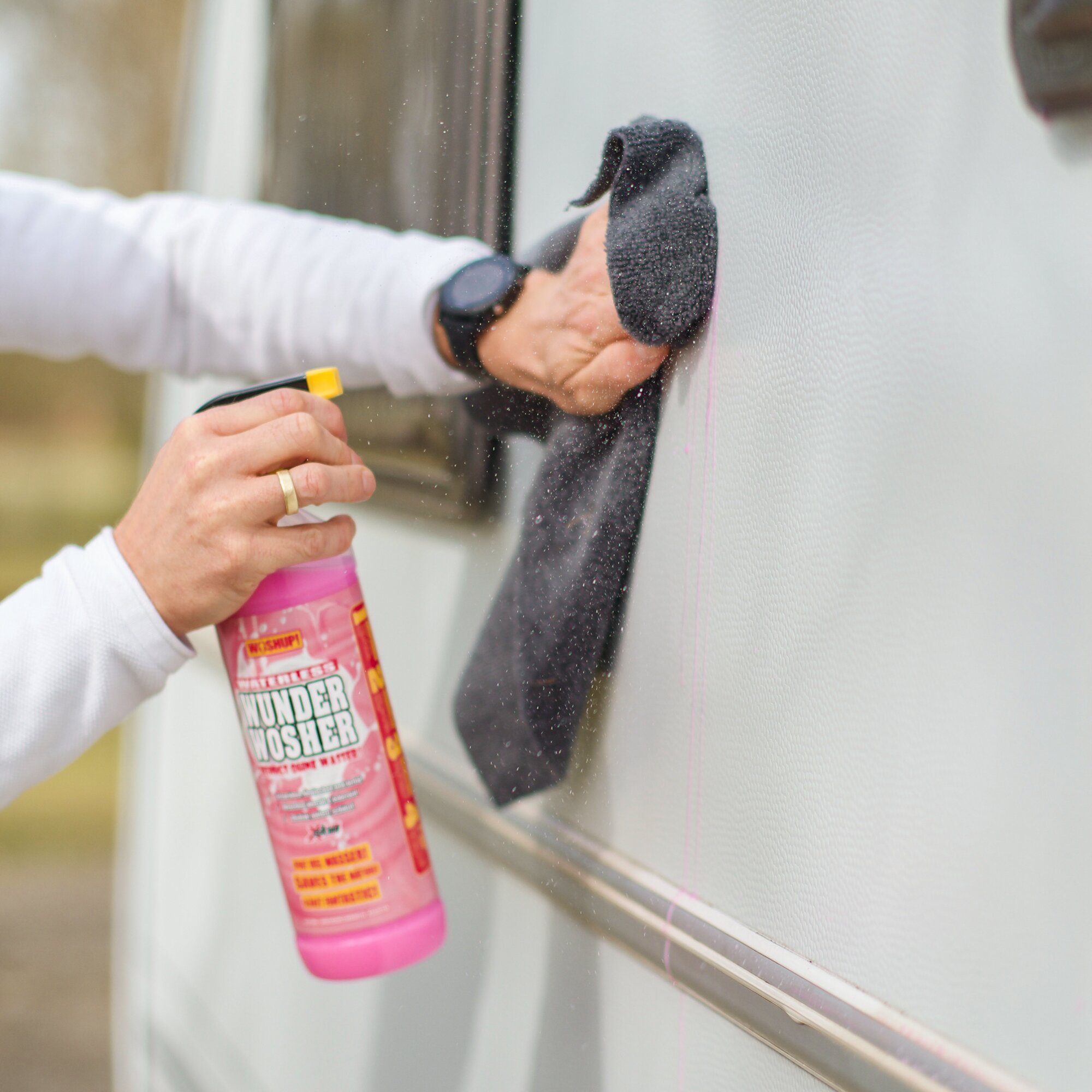 Mit dem Waterless Wunder Wosher reinigen Sie Ihr Fahrzeug, wann und wo Sie möchten – ganz ohne Wasser und unabhängig von speziellen Waschplätzen. In Kombination mit einem Hochflor-Reinigungstuch werden Schmutzpartikel sicher eingeschlossen, wodurch Kratzer effektiv vermieden werden. Der Xtra Skin Effekt sorgt zusätzlich für intensiven Tiefenglanz und verlängert die Sauberkeit. Für beste Ergebnisse werden fünf bis sechs Hochflortücher empfohlen, andere geeignete Reinigungstücher sind ebenfalls verwendbar.