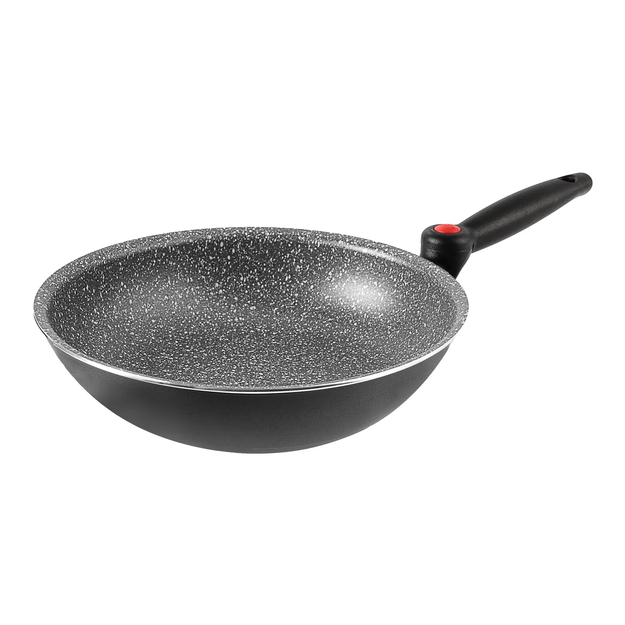 Wok-Pfanne ø 28 cm aus Aluminium mit Antihaftbeschichtung. Dank patentiertem, klappbarem Griff kannst du sie platzsparend verstauen.